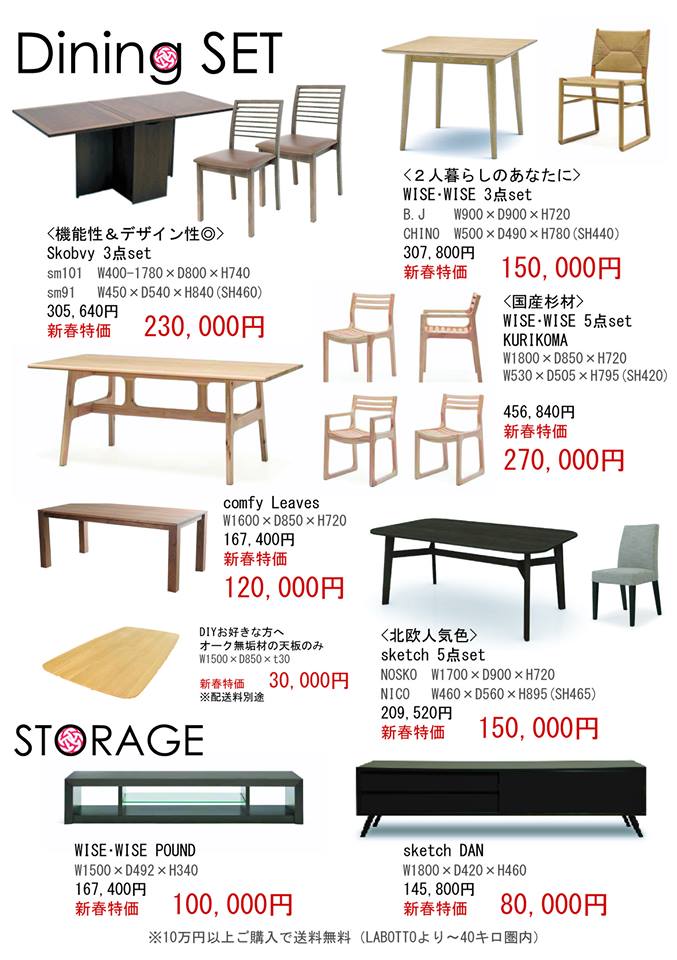 2019年ラボット初売り1/4スタート!家具も雑貨も初売り特価!2018.12.24