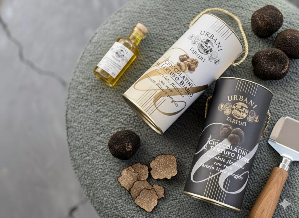 イタリアのトリュフ専門店URBANI(ウルバーニ)の高級トリュフオイルが入ったチョコレート。芳醇なトリュフの香りとくちどけ滑らかなチョコレートの風味が楽しめるチョコレートです。黒トリュフは、森林を思わせる土のニュアンスと、ほのかなマッシュルームのような奥行きのある香りが特徴。一方、白トリュフは採取量が少ない希少品種で、アーモンドのようにまろやかで繊細、かつ華やかさのある香りが特徴です。