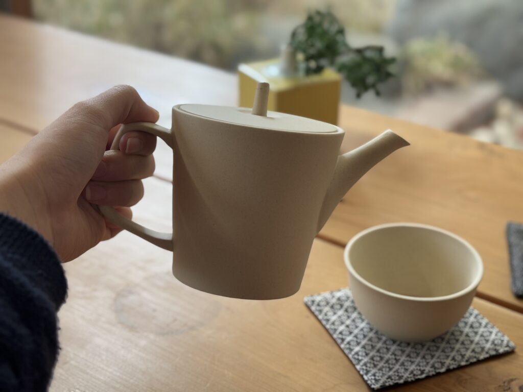 手に持ってみると、その愛らしい風合いとスタイリッシュな形の急須に、ずっとそばに置いておきたくなります!