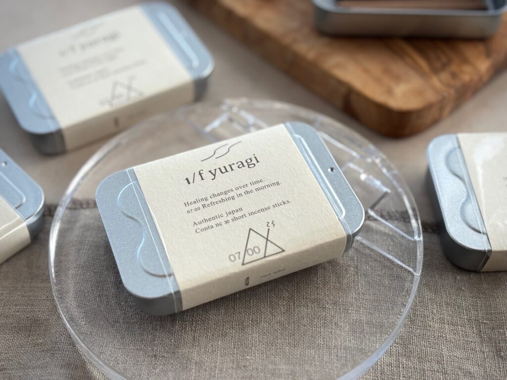 アルミのケースに入った持ち運びにも便利なお香1/fゆらぎ。1日に過ごす時間をイメージして調香された、面白いコンセプトのお香です。全種類買って時間ごとに焚いたり、気持ちの切り替えをしたいときに焚いたりなど、様々な楽しみ方ができるお香です。