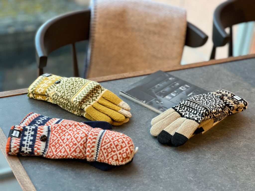 ラボットでもスタッフが愛用する毎年大人気のミットシリーズ!5本指とミトンが一体になったEVOLGらしいデザインに可愛いノルディック柄が目を惹きます。スマートフォントを使わない時など指先を動かさない時の外出時はミトンカバーをかぶせて冷える指先の防寒性もアップできちゃう優れもの。