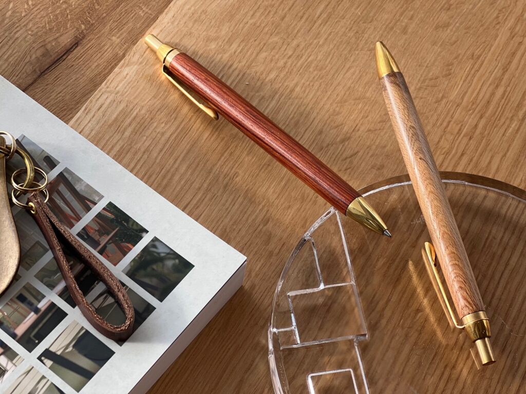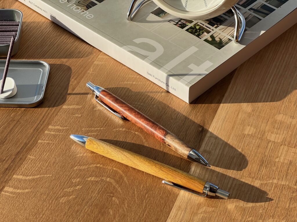 たとえ同じ樹種でも二つとして同じ模様がなく、手にするたびに心が整うような木製ボールペン。
