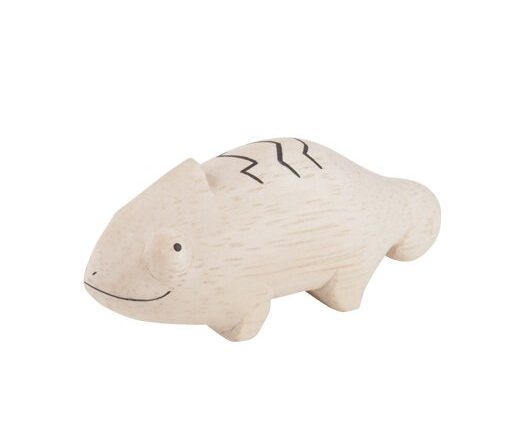 ぽれぽれ動物のカメレオンは、緑色ではないものの、ギョロっとした目やぽっこりした後頭部を凹凸で表現し、尻尾の渦など、しっかり特徴を捉えつつ、木の温もり感じるデザインとなっています。
