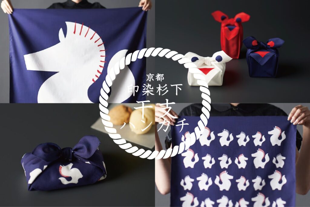 室町時代から伝わる印染(しるしぞめ)は、目印となるようにのぼりや風呂敷に家紋などをくっきりと染める技術。この伝統技法を残すために新しいことへ挑戦したいという想いから生まれたのが『印染杉下』です。印染ならではの染めの美しさや鮮やかな発色を身近な生活の中でお楽しみください。新年やハレの日のご挨拶にもピッタリな逸品です。